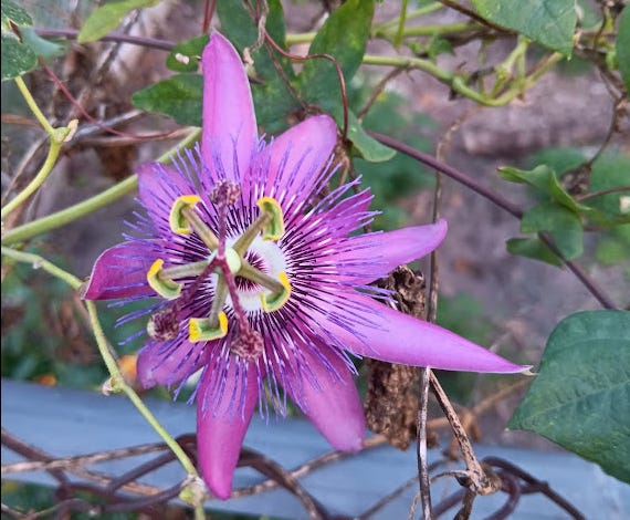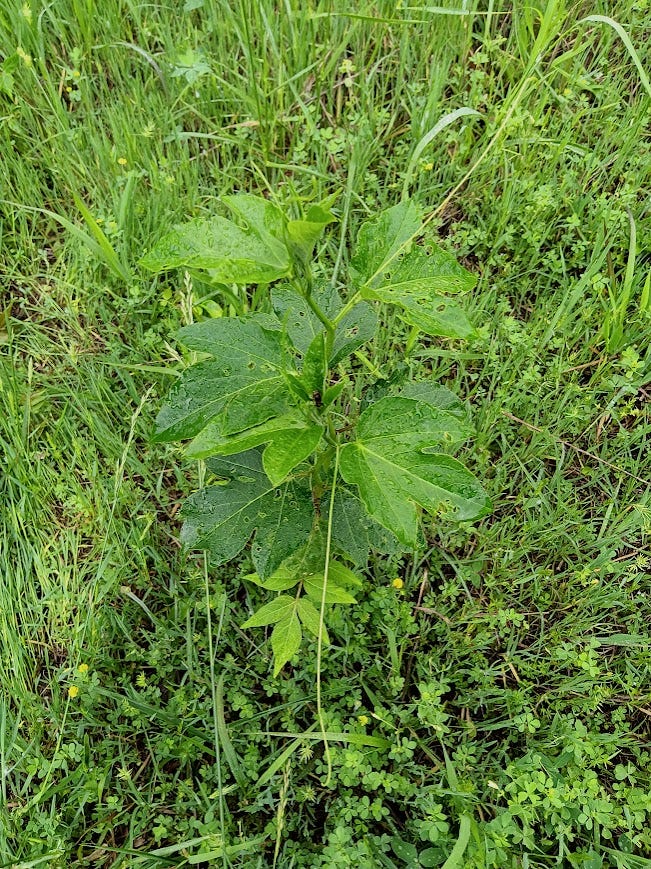 Passion vine is coming up again in the field, along with several varieties of milkweed. I’m thrilled about both of these because passion vine is a medicinal plant that’s useful for soothing anxiety, and of course, milkweed is a host plant for monarch butterflies. Passion vine pops up in different spots throughout the field, climbing the tall grass as it grows throughout the summer. I can’t wait to see its alien-like blooms emerge in the next month or so.