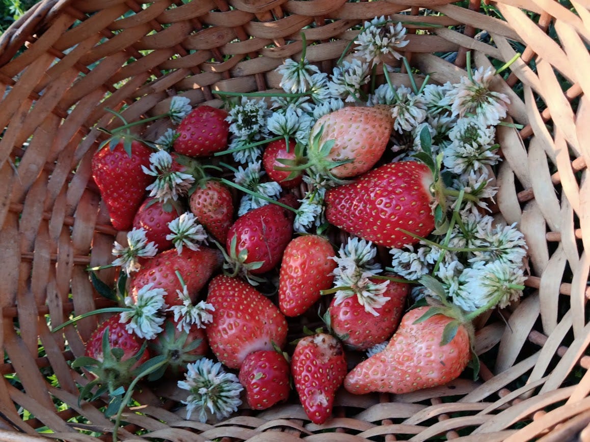 May 1 is the halfway point between the spring equinox and the summer solstice. Growth is ramping up in the garden. The hard, physical work of planting trees, maintaining the garden, paths, fencing, and animals is overwhelming at times, but it’s some of the most rewarding work. It is balanced by relaxing walks through the forest and sitting by the creek in the evenings. I’ve enjoyed working outside in the early mornings and late afternoons, and having my nephews and niece over to watch, help, or hang out with the chickens. I’m enjoying connecting more with folks who live nearby, exchanging fresh eggs or plant starts for honey or coffee, and having a nice conversation.