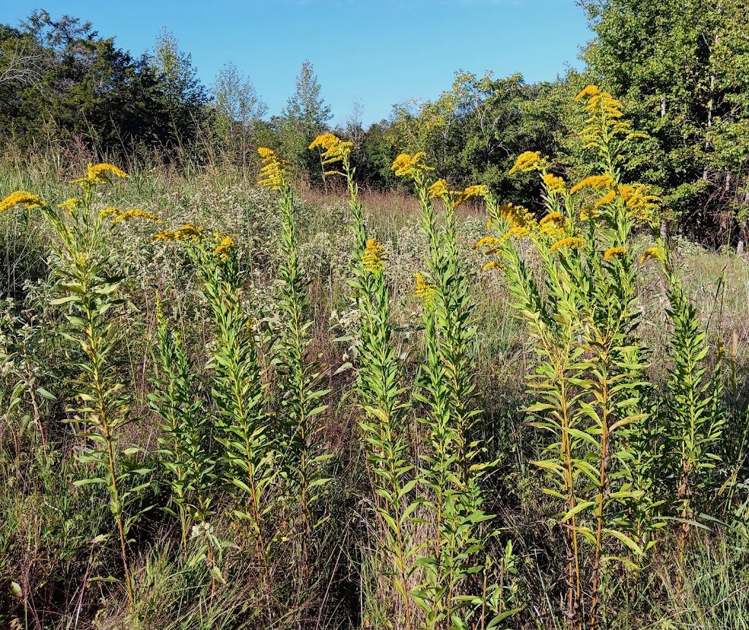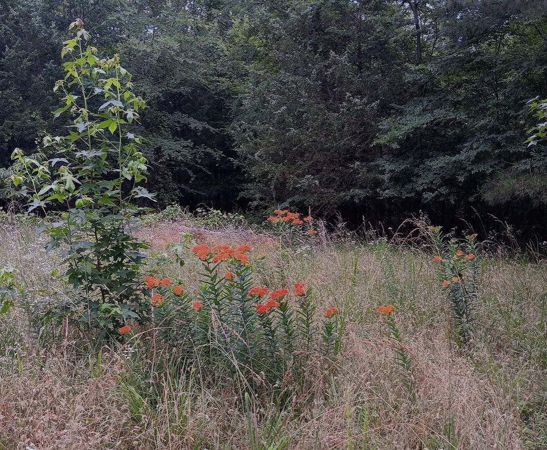 Native wildflowers abound throughout the field that was once consistently brush-hogged and baled at least twice per year. Those fields are full of wild passionflower, black-eyed susan, yarrow, fleabane, goldenrod, wild phlox, coneflowers, cinquefoil, milkweed, and more. I see bees, butterflies, and a host of other insects enjoying these each day.